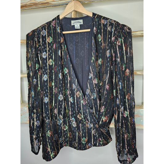 Vintage Lizzy & Johnny Wrap Blouse with Metallic Ladies size 16