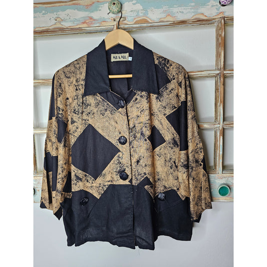 Vintage MIAMI Button Up Linen Top With Dolman Sleeves Size Large