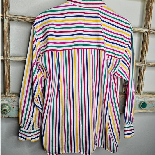 Vintage Liz Wear Brightly Striped ladies oxford size Medium