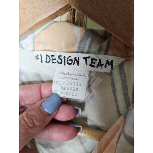 Vintage Mirasol Rayon Patchwork Tan Dress Ladies size Medium