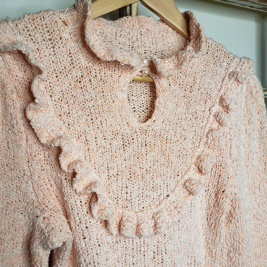 Vintage Light Peach Sweater Ruffles Neckline/ Cuffs ladies size small