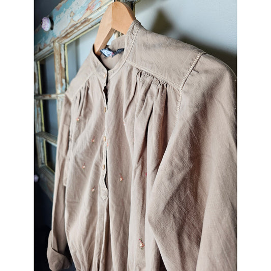 Vintage Nitya Khaki Top with elastic waist and embroidery Ladies size Medium