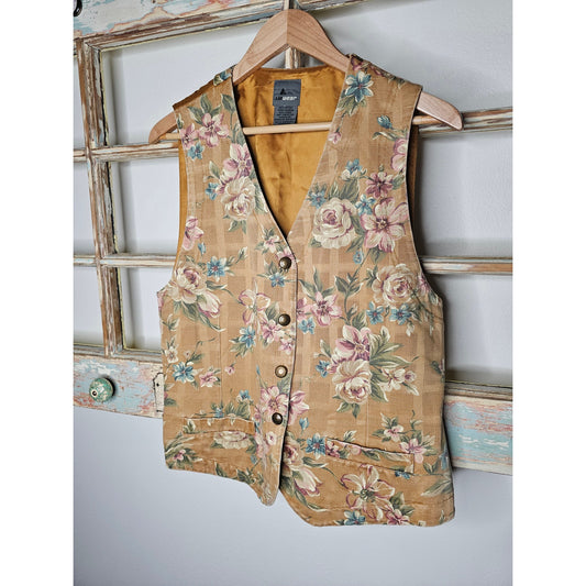 Vintage Liz Wear Floral Vest with Brass Buttons size Large
