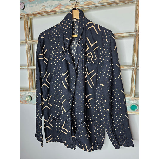 Boho Black/ Tan Open lightweight Geometric Pattern Blazer Size Large