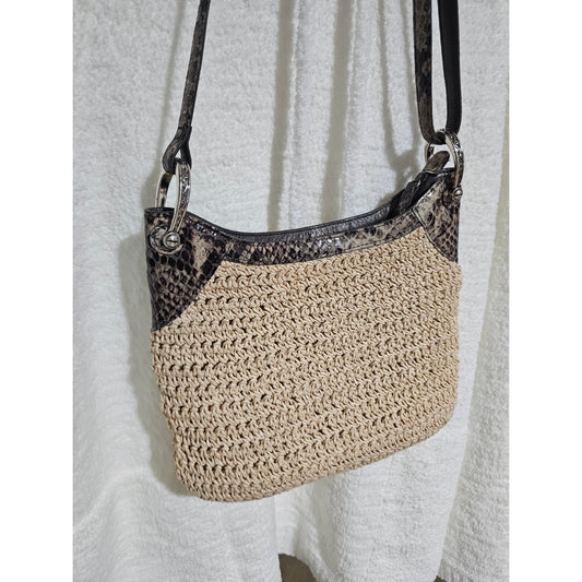 Brighton Leela Straw Crossbody With Snake Skin Accents