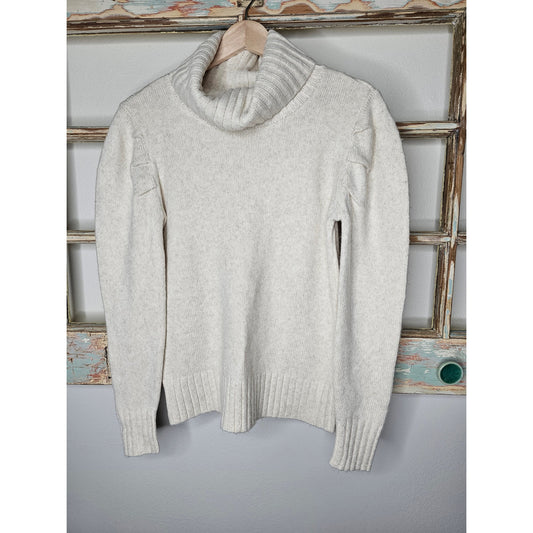 CABI Cotton Blend Oatmeal Color Pleated Shoulder Sweater Size XS