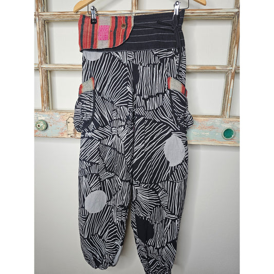 Boho Tribal Black & White Wide Leg Joggers Ladies size Small/ Mediium