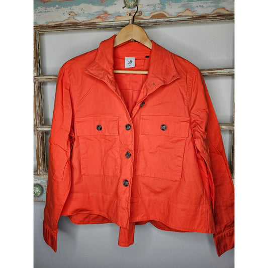 Cabi Orange/Red Swing Utility High/Low Jacket Ladies size Medium