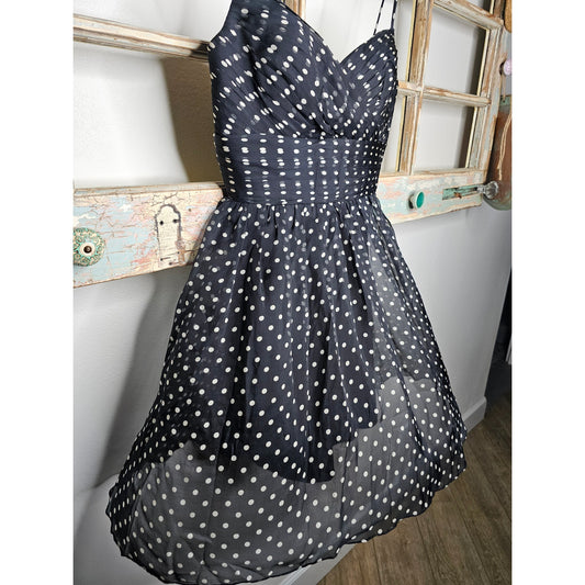 Black & White 100% Silk Polka Dot Mini Dress Spaghetti Straps Ladies size 8