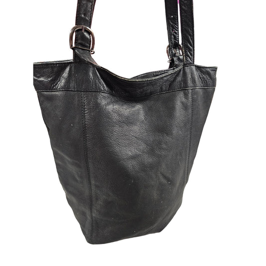 Black Leather Boho Shoulder Bag School/laptop/ Student/ Business