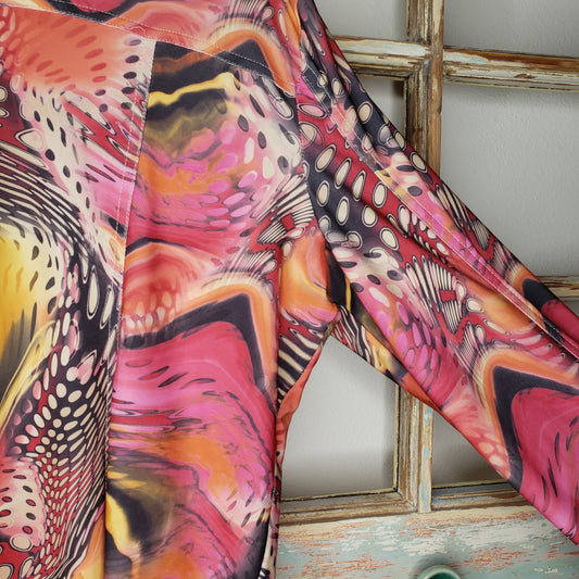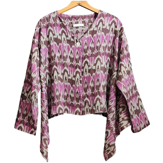 Bryn Walker Linen Ikat Print One Button Over shirt Ladies size Medium