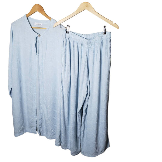 Bryn Walker light blue pull on pants with embroidery Ladies size M