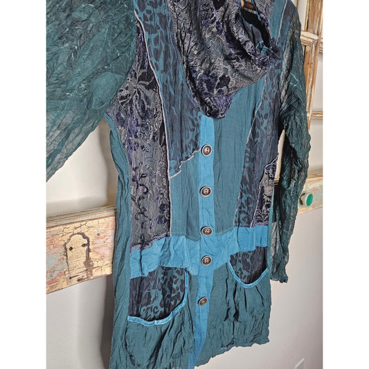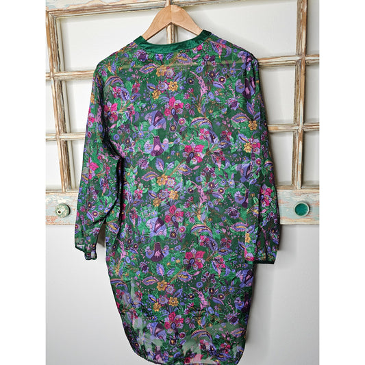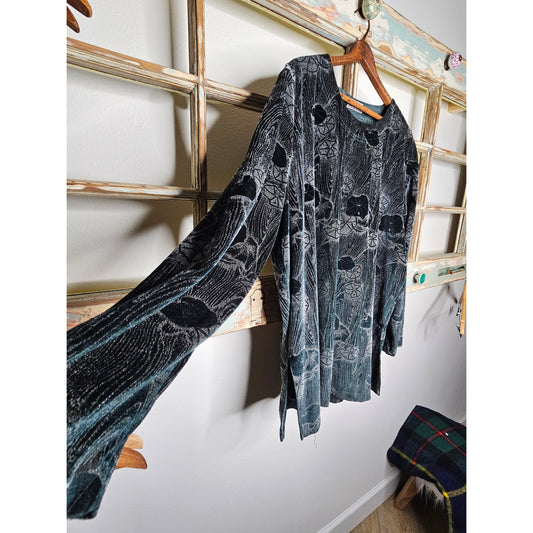 Vintage Velour Long-Sleeved Dark Green Imprinted Design Ladies size XL Tunic