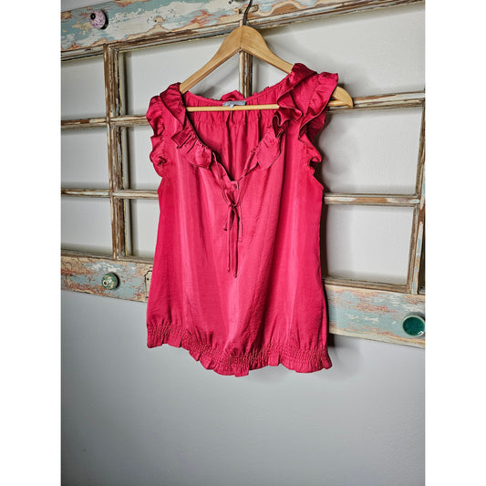 Violet & Claire Red Sleeveless Blouse with Ruffles Ladies size small