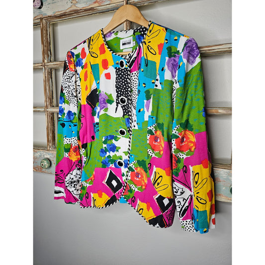 Vintage Vibrant 90's Leslie Fay Blazer 4 Funky Buttons Size 12