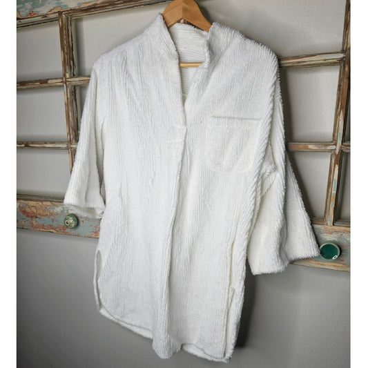 Vintage White Terrycloth Pullover Deep V Neck 1/2 Sleeves Size