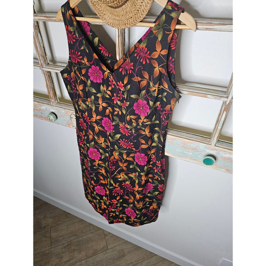 Vintage Studio Ease Linen blend Fall floral V-neck dress Size 12