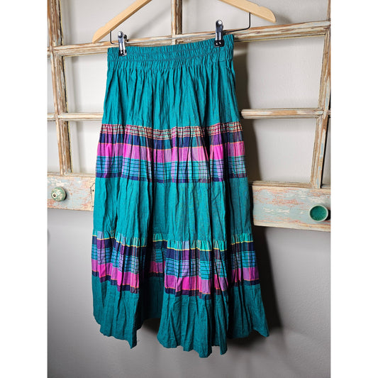 Vintage Sunny Sport Madras Midi Pleated Elastic Waist Skirt Size 8 / 26