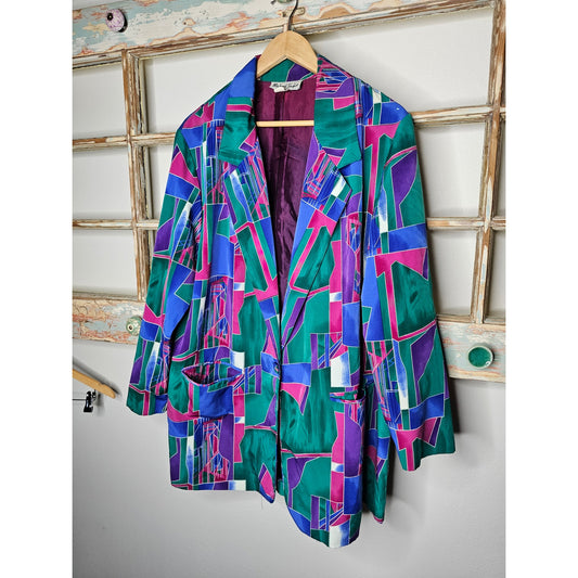 Vintage Vibrant Geometric Button Front Blazer Ladies size 1X