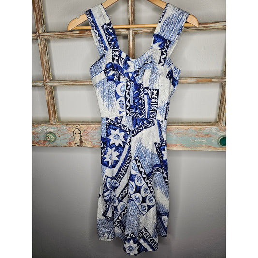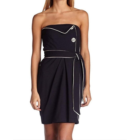 Eva Franco Halter Navy/ White Cocktail Dress Self Tie Belt Size 0