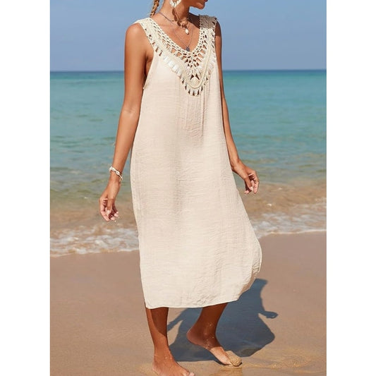 Floerns Women's Sleeveless V Neck Slit Hem Crochet Cover Up Dress size Medium