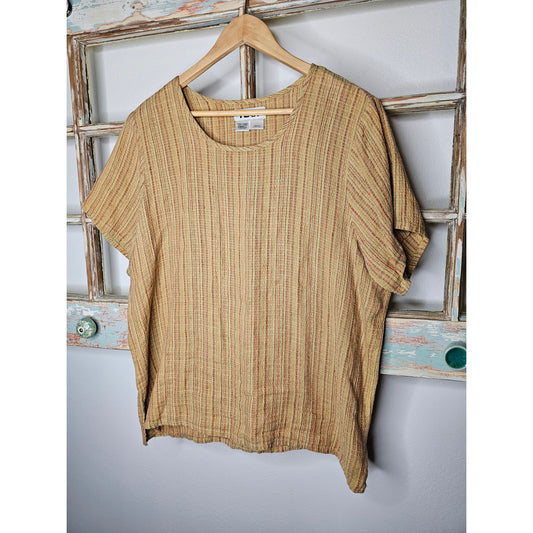 FLAX Linen Short Sleeve Tunic Boat Neckline Top Ladies Size Small