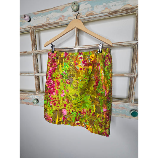 Etcetera Lined Abstract Skirt Womens Size 12 Green Multi Beaded Pencil