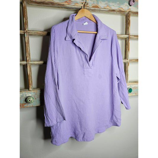 Et' Lois Cotton Purple Gauzy pullover Ladies size Large