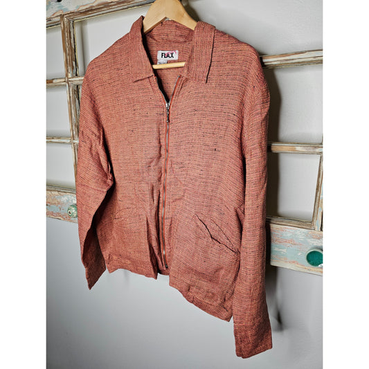 Flax Linen Zip Up Collared Jacket with Front pockets in Coral Tweed Size Small