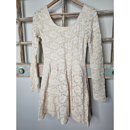 Free People Cottage Core Cream Scoop neck Knit Lace Mini Dress size Small