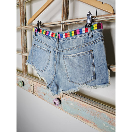 Free People Eliot Embroidered Waistband Denim Jean Shorts Size 24