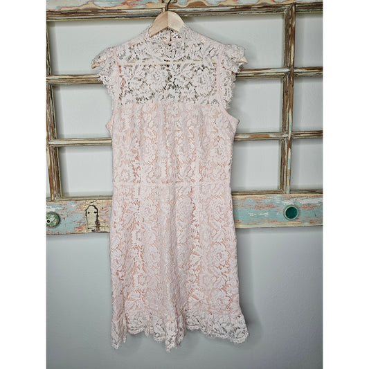 Eyelash Lace Mini Dress W Keyhole Back in Peach By Aijek Ladies 3 / size 10