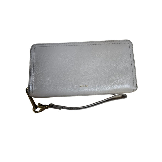 Fossil Khaki Gray Leather Clutch Wallet With Carry Strap