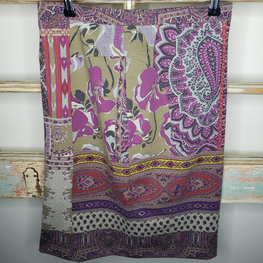 ETRO Milano Paisley Design Knee Length Skirt in Rich Purple Hues ladies size 42 / 10