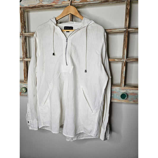 INC International White Linen Pullover Hoodie 1/3 Zip Ladies size XL