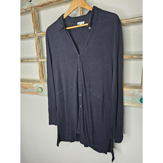 J. Jill Black V-Neck Button Up Tunic Style Ladies Top Size XL