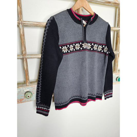 Hanna Anderson Fair Isle Colorblock 1/3 Zip Sweater Ladies size small