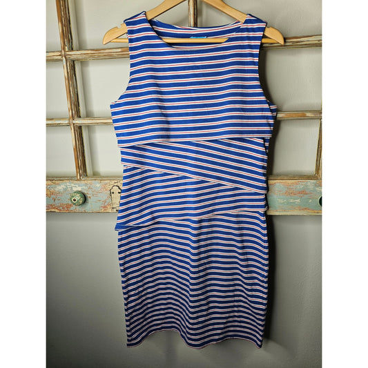 J. Mclaughlin Red/White/Blue Striped Nicola Tiered Sleeveless dress size Medium