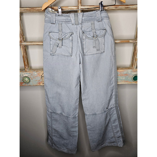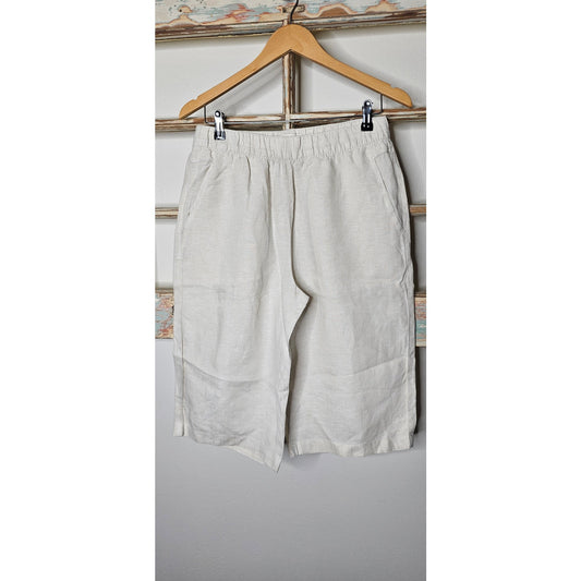 Ivory Linen Elastic Waist Pull On Relaxed Long Short Ladies size meidum