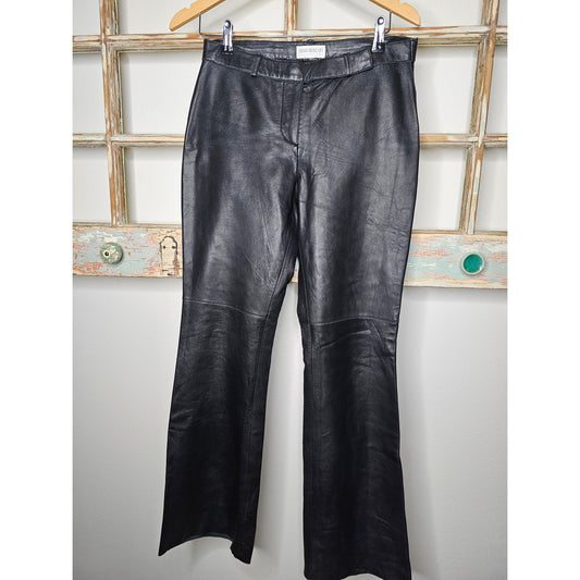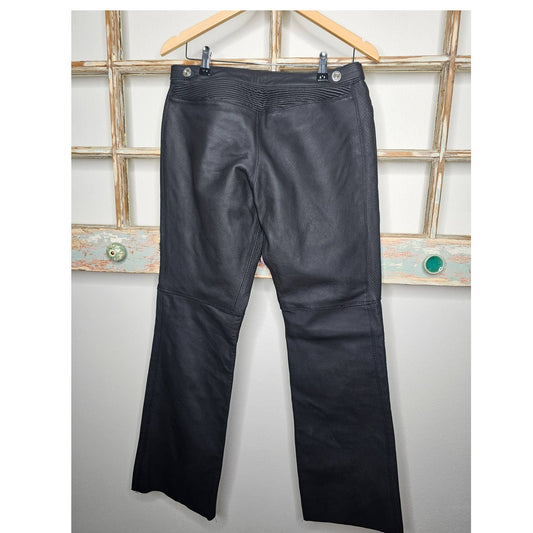 Hugo Buscati Black Leather Straight Leg Pants Motorcycle, riding, biker chic Size 8