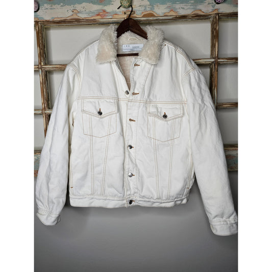 IRO Paris White Denim Franz Shearling lined Denim jacket Size FR 34 / US 2