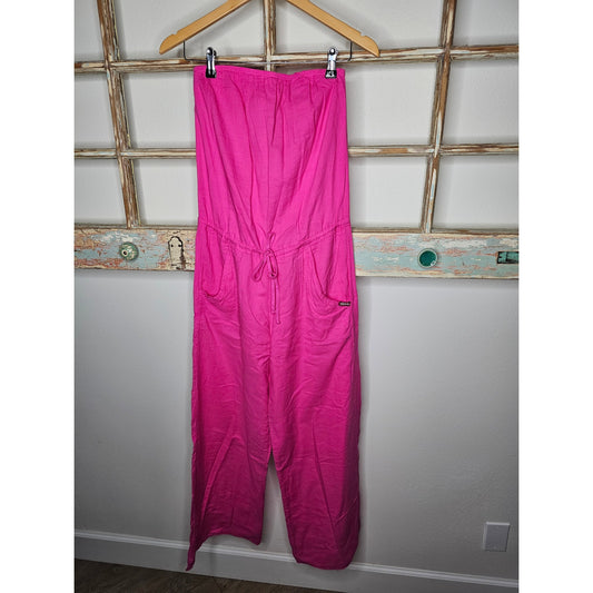 Hot Pink Strapless Drawstring Wide Leg Jumpsuit Ladies size XS