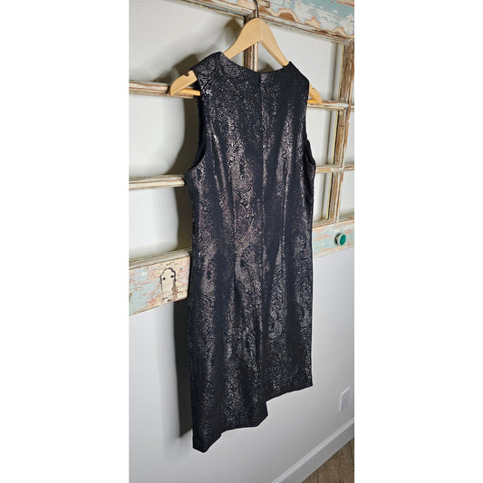J. Mclaughlin black/pewter metallic floral sleeveless knee length Dress ladies size 6