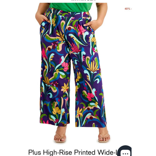 INC International Concepts Retro Mod Print Wide Leg Pants size 10