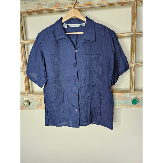 Irish Linen Navy Short Sleeve Button Up Shirt Richard Malcolm Size Large