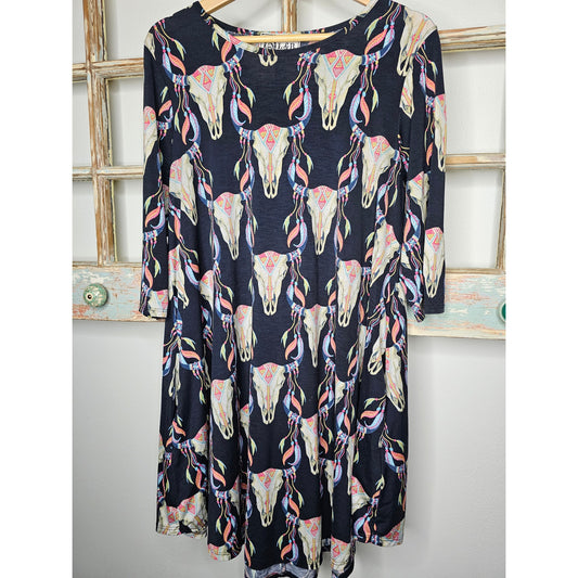 L & B Black Boutique Wester Steer Dress Pockets Ladies Size Medium