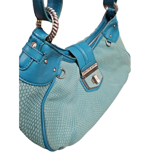 Judith Ripka Turquoise Suede Snakeskin leather Hoho Shoulder Bag Purse wi/ Dust bag