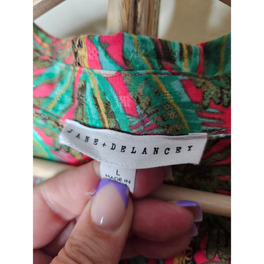 Jane & Delancey Jungle Safari Rain Forest Long Button Up Ladies size Large