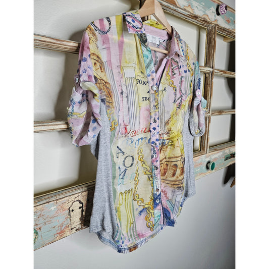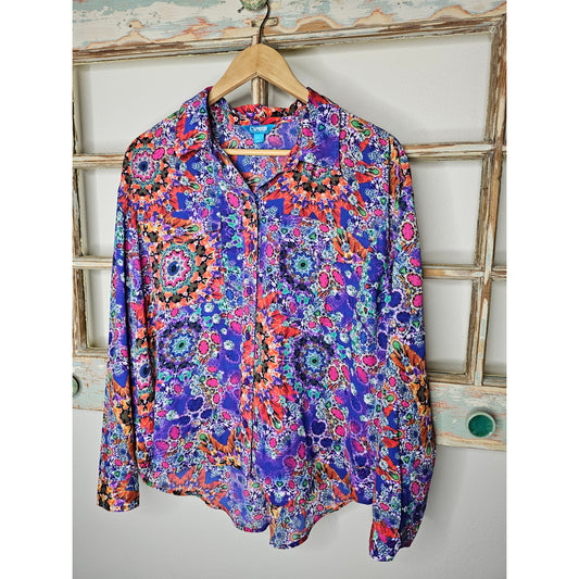 L'Amour Nanette Lepore Vibrant Abstract Button Up Blouse Size XL