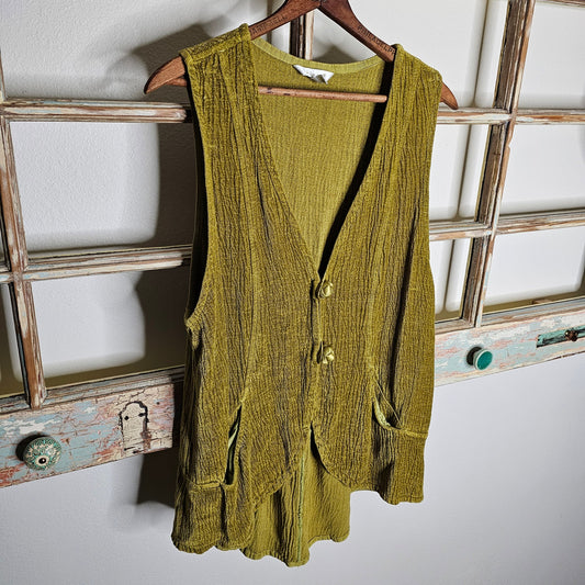 Kleen Pistachio Green Boho High/Low Vest Size Large Knotted Buttons Peplum